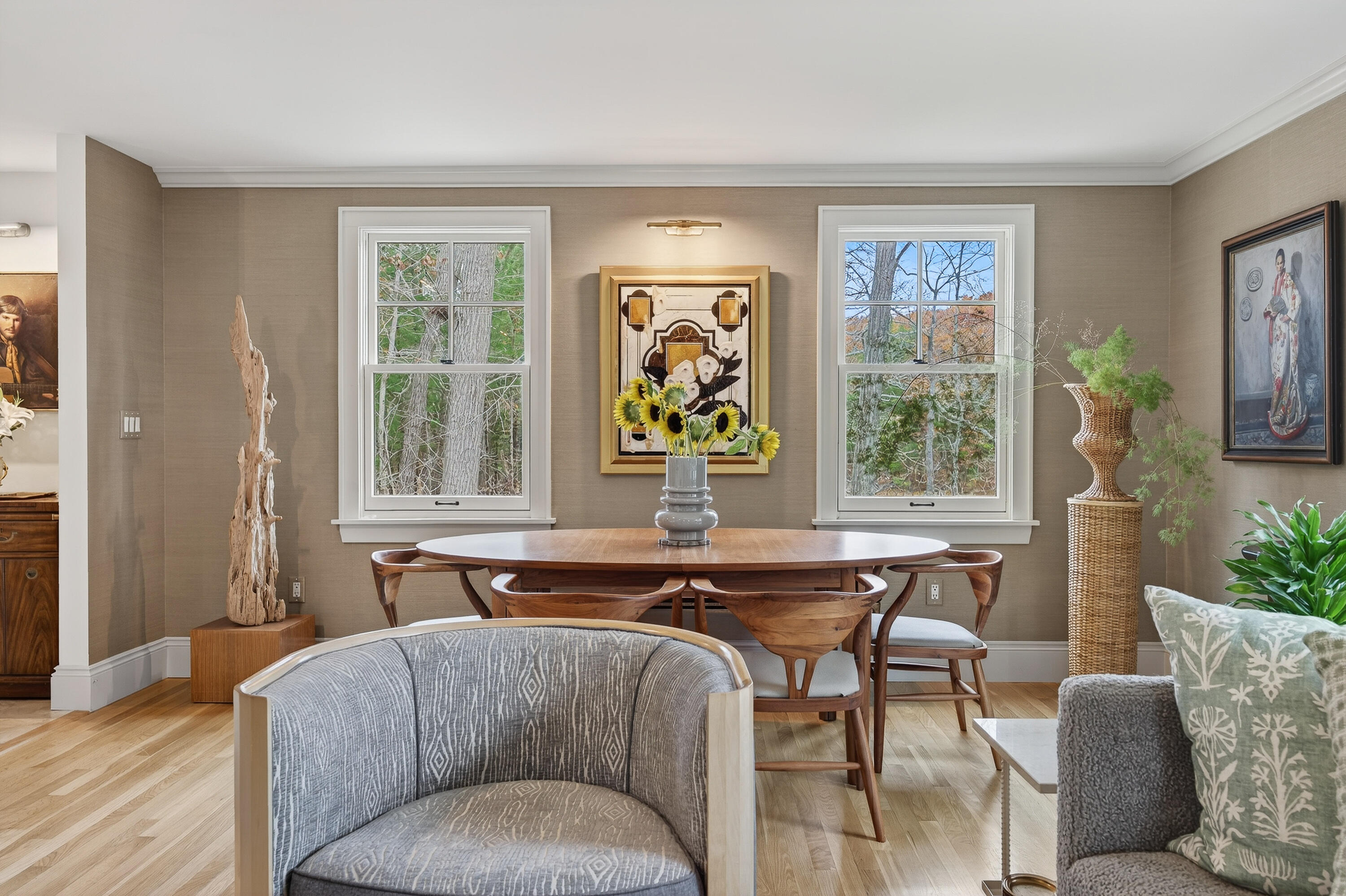 A rare opportunity to own a striking, reimagined residence on the banks of the York River. Thoughtfully planned as a full-scale designer renovation in collaboration with acclaimed Maine designer Tyler Karu, this property has already garnered national attention and was featured in HGTV Magazine. Intended to become a true work of art, the home reflects Karu's signature aesthetic--organic textures, elevated materials, luxurious finishes, and curated, timeless sophistication. Inside, dramatic onyx floors set a bold tone while grasscloth wallpaper, curated lighting, and custom built-ins create a layered, refined, and inviting atmosphere. The main level offers effortless living with a first-floor primary suite--or an ideal guest retreat--supported by modern comforts including air conditioning and a whole-house generator. The finished lower level expands the living space and offers ample storage, ensuring both beauty and function. Outside, the setting is nothing short of exceptional. Sweeping, peaceful views of the York River unfold from every angle, offering ever-changing coastal beauty. Enjoy access to a private neighborhood dock, making boating, kayaking, and waterfront relaxation part of everyday life. A rare, design-driven coastal sanctuary--where thoughtful craftsmanship, riverfront serenity, and modern comfort come together in perfect balance.